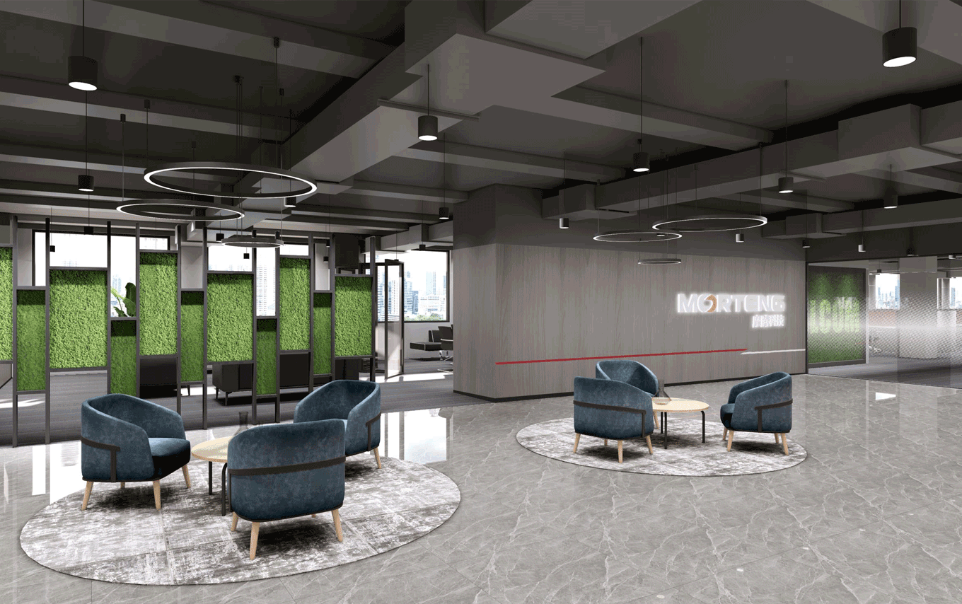 寫字樓形象、辦公空間的展示,也是客戶接觸的一個重要懷節,寬大的空間感,品牌標志的精細感。